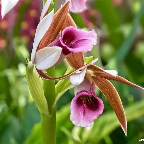 栗鳞贝母兰:根状茎粗壮,坚硬,粗7-8毫米,密被紫褐色的革质鞘。假鳞茎在根状茎上通常相距2-3厘米…