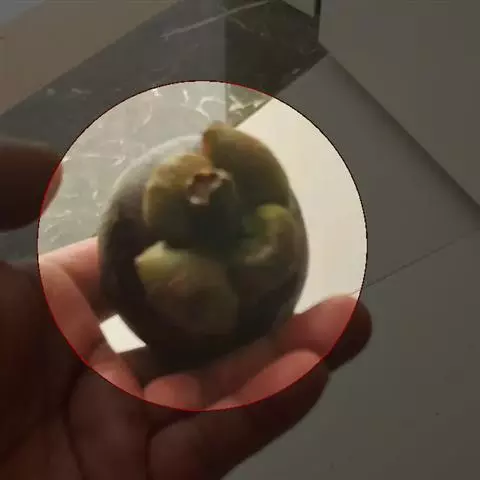 笋紫红色,疏被黄色刺毛;箨鞘宿存,稍短于其节间,薄革质,长三角形,先端三角形,背面的基底密被黄色或黄褐包刺毛,其余部分疏生黄色刺毛,纵肋极显著,小横脉明显,边缘上部密生黄色或黄褐色刺毛;箨耳无,鞘口无缝毛或初时生有淡黄色直立长达3毫米之缝毛,但以后脱落;箨舌截形,高约1毫米,边缘初 时生纤毛;箨片线形或线状披针形,外翻,无毛。笋期9月。