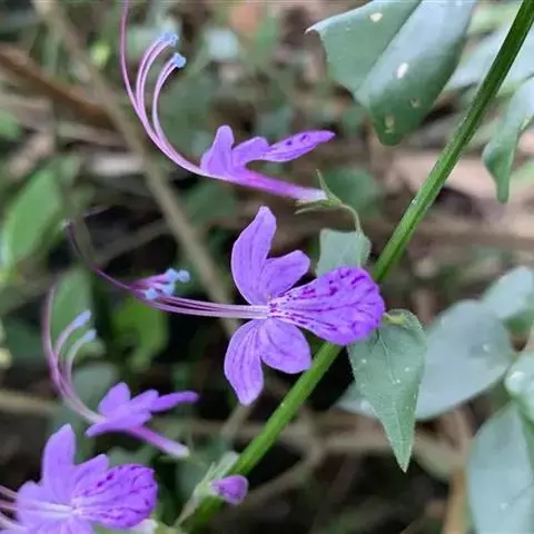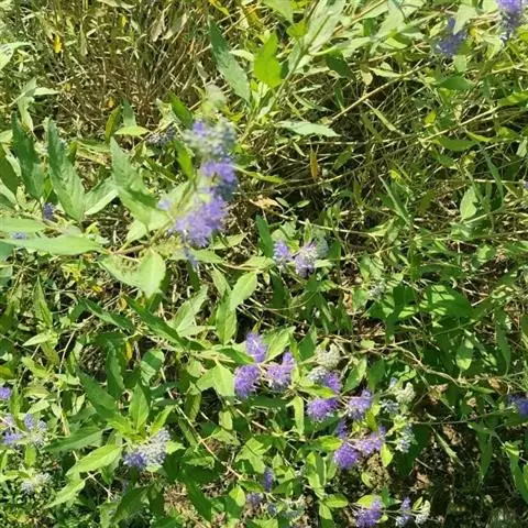 原种(莸):多年生草本,高约80厘米;茎方形,疏被柔毛或无毛。叶片膜质,卵圆形,卵状披针形至长圆形,长2-14厘米,宽1.2-5厘米,顶端渐尖至尾尖,基部近圆形或楔形,下延成翼,边缘具粗齿,两面疏生柔毛或背面的毛较密,侧脉3-5对;叶柄长0.5-2厘米。