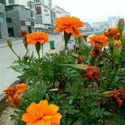万寿菊是菊科万寿菊属一年生草本植物,别名孔雀菊、缎子花、臭菊花、西番菊、红黄草、小万寿菊、臭芙蓉、孔雀草。万寿菊茎近基部分枝。叶羽状分裂,长5-10厘米,宽4-8厘米,裂片长椭圆形或披针形,具锐齿,上部叶裂片齿端有长细芒,叶缘有少数腺体。头状花序单生,径5-8厘米,花序梗顶端棍棒状。总苞长1.8-2厘米,径1-1.5厘米,杯状,顶端具尖齿。舌状花黄或暗橙黄色,长2.9厘米,舌片倒卵形,长1.4厘米,基部成长爪,先端微弯缺。管状花花冠黄色,长约9毫米,冠檐5齿裂。瘦果线形,被微毛;冠毛有1-2长芒和2-3短而钝鳞片。花期7-9月。万寿菊中国各地均有栽培,在广东和云南南部、东南部已归化,国外原产墨西哥。万寿菊对土壤要求不严,但以肥沃疏松排水良好的土壤为好。耐移栽,种子发芽适温21-24℃,植株生长适合温度为20-29℃。喜温暖和阳光充足的环境,不