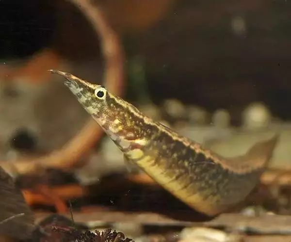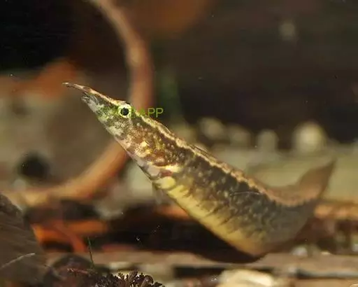 刺鳅 刺鳅科,刺鳅属。俗称:倒鳅,钢鳅,刀鳅,石锥。英文名:Spiny eel 。 体细长,前端稍侧扁,肛门以后扁薄。头长而尖。吻稍长,但不及眼后头长,吻端向前伸出成吻突,其长度约等于眼径。前鼻孔呈管状,位于吻的两侧;后鼻孔圆形,近眼前缘。眼位于头部的侧上方,表面覆以薄皮,眼下前方有一倒生的小刺,埋于皮内。口下位,口裂几成三角形,口角达眼前缘或稍超过。上下颌具绒毛状齿,呈带状排列。胸鳍小而圆,无腹鳍,背鳍和臀鳍分别与尾鳍相连。背鳍前方有1排各自独立的硬棘,约为31-33枚;臀鳍具棘3枚;尾鳍略尖。体鳞细小,侧线不显著。体背黄褐色,腹部淡黄。头部从眼上向后有2条淡色线条,沿体背纵伸至尾鳍基。体背、腹侧有许多网状花纹,背鳍、臀鳍与尾鳍的基部网纹更为明显,体侧有30余条褐色垂直条斑。有些个体条斑上端色较深黑,有部分个体近腹侧的条斑之间杂以短斑。背棘基黑褐色,胸鳍淡黄色或灰黄,其余各鳍灰色,臀鳍下缘常饰以白边。 为底栖性鱼类。生活于多水草的浅水区。以水生昆虫及其它小鱼为食,生殖期大约在7月份。