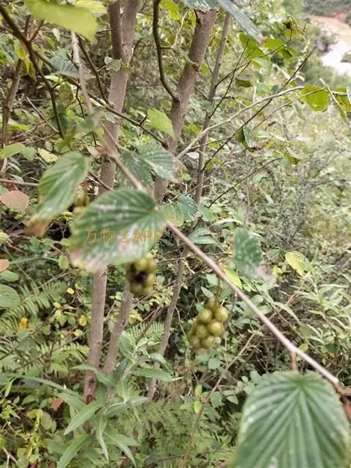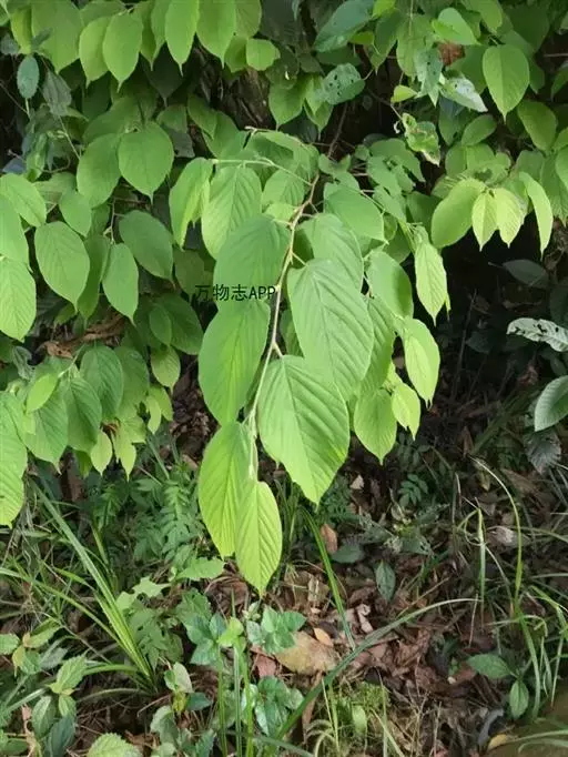 落叶灌木;嫩枝有柔毛,老枝秃净,有皮孔;芽体椭圆形,外面有柔毛。叶薄革质,倒卵圆形或倒卵形,有时为长倒卵形,长5-9厘米,宽3-6厘米;先端急短尖或略钝,基部不等侧心形;上面秃净无毛,或仅在中肋有毛,下面有灰褐色星状柔毛;侧脉7-8对,最下一对侧脉靠近基部,第二次分支侧脉不强烈;边缘有锯齿,齿尖刺毛状;叶柄长约1厘米,有星毛;托叶窄矩形,长约2厘米,略有毛。
