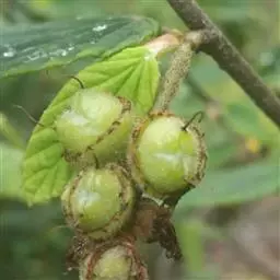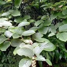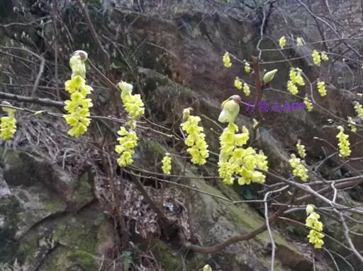 蜡瓣花 小蜡瓣花(Corylopsis sinensis Hemsl. var.parvifolia Chang)嫩枝有毛。叶倒卵形,长3-5.5厘米,宽2-4厘米,先端略尖,基部不等侧心形,下面有黄褐色星状柔毛,侧脉7-9对,在上面下陷,边缘有锯齿;叶柄长5-8毫米,有星毛。果序长4厘米,被绒毛,有蒴果10-14个,果序柄长1厘米。蒴果长7-8毫米,被星毛,宿存花柱长5-6毫米。分布于中国安徽,见于金寨地区。叶和果实的形态很接近于蜡瓣花,特别是宿存萼筒长为蒴果的4/5,只是叶片极为细小。