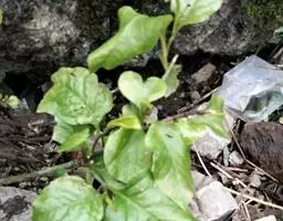 茎基木质,肥大而具多头,被有多数白色膜质芽鳞和残存的叶柄基部。叶基生,匙形、长圆状匙形至线状披针形,小,长约5-15毫米,宽1-3.5毫米,先端圆、钝或急尖,基部渐狭成扁柄。