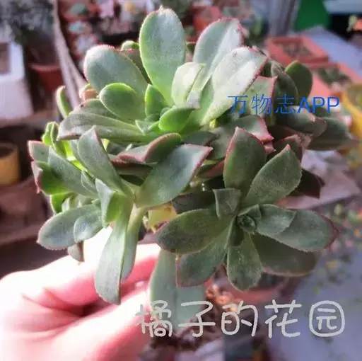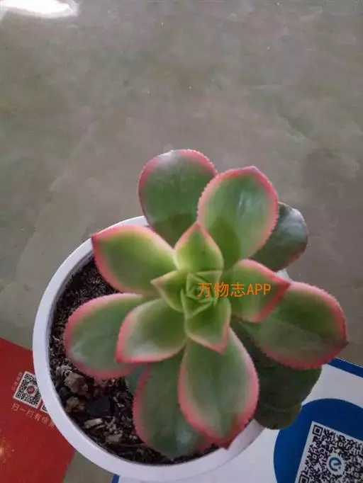 红缘莲花掌属蔷薇目、景天科植物,原产大西洋的加那利群岛。质厚,蓝绿色,被白霜,叶缘红褐色。聚伞花序,…