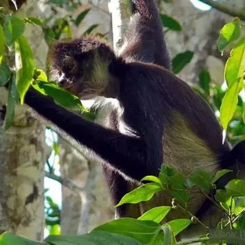 蛛猴属:共有7种。头体长约35-66厘米。头又圆又小,四肢细长,手没有拇指。…