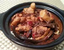 小鸡炖蘑菇是一道东北炖菜。通常是用干蘑菇、鸡肉和粉条一同炖制而成。榛蘑可以衬托出鸡肉的鲜香,粉条滑…