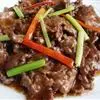 黄牛肋条肉500克,青蒜丝5克,植物油20克,葱段15克,姜块7.5克,料酒12克,盐、味精、胡椒粉适量。