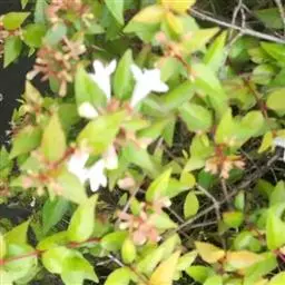 大花六道木,忍冬科六道木属半常绿矮生灌木。其幼枝为红褐色,有短柔毛;叶片倒卵形为墨绿色,…
