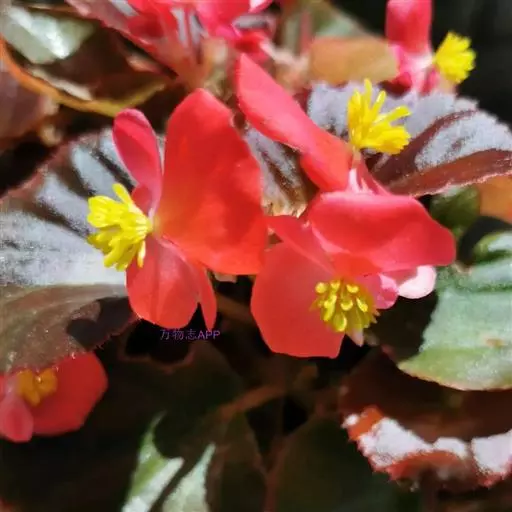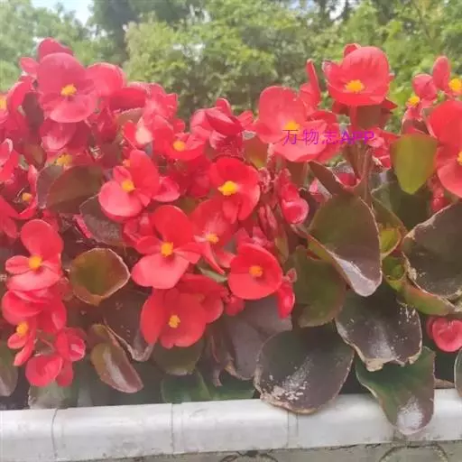 多年生常绿草本,茎直立,稍肉质,高15-30厘米。单叶互生,有光泽,卵圆至广卯圆形,长5-8厘米,宽3-6厘米,先端急尖或钝,基部稍心形而斜生,边缘有小齿和缘毛,绿色。聚伞花序腋生,具数花,花红色,淡红色或白色。蒴果具翅。花期3-12月。 四季秋海棠