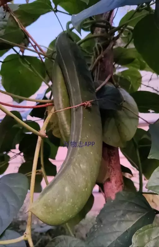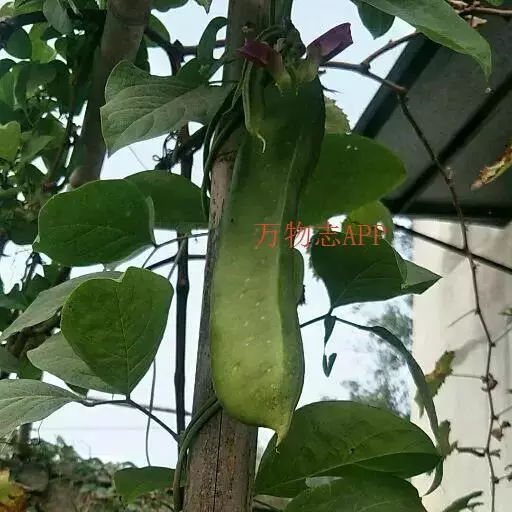 刀豆(学名:Canavalia gladiata (Jacq.) DC. )是豆科,刀豆属缠绕草本,长可达数米,羽状复叶,小叶卵形,基部宽楔形,侧生小叶偏斜;叶柄常较小叶片为短;小叶柄被毛。总状花序具长总花梗,有花数朵生于总轴中部以上;花梗极短,小苞片卵形,早落;花冠白色或粉红,旗瓣宽椭圆形,顶端凹入,子房线形,被毛。荚果带状,略弯曲,种子椭圆形或长椭圆形,种皮红色或褐色,种脐约为种子周长的3/4。7-9月开花,10月结果。