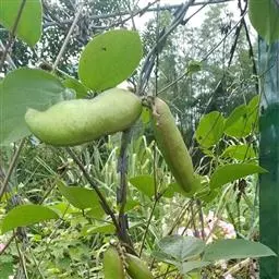 荚果带状,略弯曲,长20-35厘米,宽4-6厘米,离缝线约5毫米处有棱;种子椭圆形或长椭圆形,长约3.5厘米,宽约2厘米,厚约1.5厘米,种皮红色或褐色,种脐约为种子周长的3/4。花期7-9月,果期10月。