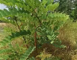 羽状复叶具3小叶,小叶卵形,长8-15厘米,宽(4-)8-12厘米,先端渐尖或具急尖的尖头,基部宽楔形,两面薄被微柔毛或近无毛,侧生小叶偏斜;叶柄常较小叶片为短;小叶柄长约7毫米,被毛。