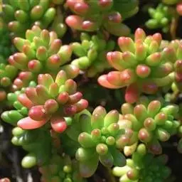 玉米石是景天科、景天属植物。多年生草本多浆植物。植株低矮丛生,多分枝。叶膨大成圆筒形、卵形或近小球形,…