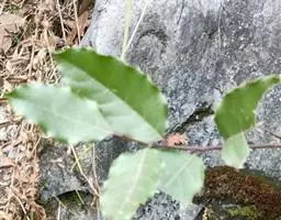 2.角花胡颓子:又名红面将军、土芋肉。本种与蔓胡颓子的主要区别点为:花单生,萼筒显著四角形(角柱状),裂片长3.5-4.5mm,网状脉在上面极明显,易于识别。