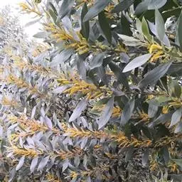 大叶相思(学名:Acacia auriculiformis A. Cunn. ex Benth.)是豆科,金合欢属常绿乔木,枝条下垂,树皮平滑,灰白色;叶片镰状长圆形,两端渐狭,穗状花序,簇生于叶腋或枝顶;花橙黄色;花萼顶端浅齿裂;花瓣长圆形,荚果成熟时旋卷,果瓣木质,种子黑色,围以折叠的珠柄。