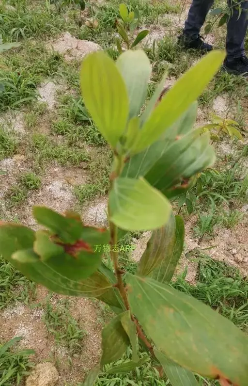 蓑蛾以幼虫危害直干型大叶相思的叶片,幼虫隐藏在囊内,将护囊粘在叶背取食,取食迁移时均负囊活动,常将叶片咬成孔洞或缺刻等症状。