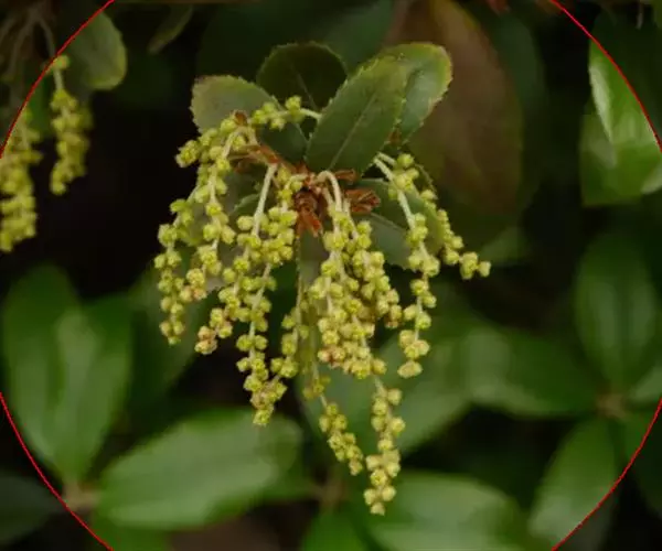 常绿灌木或小乔木,高达10米。小枝纤细,灰褐色,幼时有短绒毛,后渐无毛。叶片革质,倒卵形或窄椭圆形,长2-6(-8)厘米,宽1.5-3厘米,顶端钝尖或短渐尖,基部圆形或近心形,叶缘中部以上具疏锯齿,两面同为绿色,老叶两面无毛或仅叶背中脉被疏柔毛,侧脉每边8-13条;叶柄长3-5毫米,被疏柔毛。