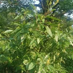 乌冈栎(学名:Quercus phillyraeoides A. Gray)是壳斗科,栎属常绿灌木或小乔木,高可达10米。小枝纤细,灰褐色,叶片革质,倒卵形或窄椭圆形,叶缘中部以上具疏锯齿,两面同为绿色,叶柄被疏柔毛。雄花序纤细,花序轴被黄褐色绒毛;壳斗杯形,包着坚果,小苞片三角形,果长椭圆形,果脐平坦或微突起,3-4月开花,9-10月结果。