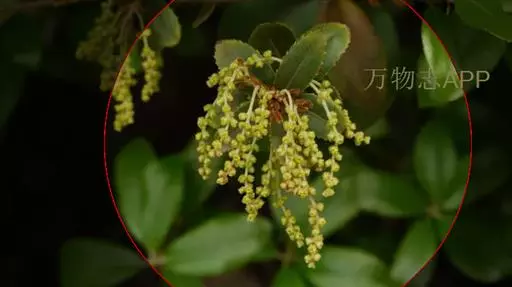 雄花序长2.5-4厘米,纤细,花序轴被黄褐色绒毛;雌花序长1-4厘米,花柱长1.5毫米,柱头2-5裂。壳斗杯形,包着坚果1/2-2/3,直径1-1.2厘米,高6-8毫米;小苞片三角形,长约1毫米,覆瓦状排列紧密,除顶端外被灰白色柔毛,果长椭圆形,高1.5-1.8厘米,径约8毫米,果脐平坦或微突起,直径3-4毫米。花期3-4月,果期9-10月。
