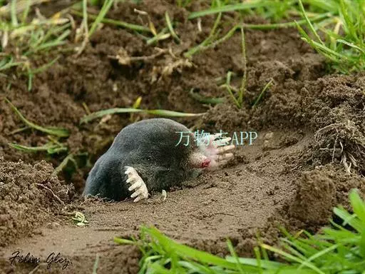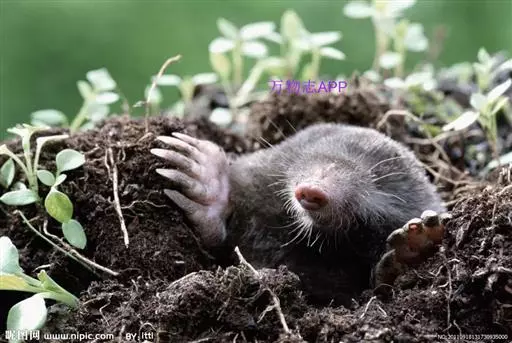 鼹 鼠的拉丁文学名就是“掘土”的意思,这种动物适于地下掘土生活。它的身体完全适应地下的生活方式,前脚大而向外翻,并配备有力的爪子,像两只铲子;身体矮胖,外形像鼠,耳小或完全退化,他的头紧接肩膀,看起来像没有脖子,整个骨架矮而扁,跟掘土机很相似。鼹鼠多栖于海拔1500米以下的山间盆地、河谷地、丘陵缓坡的常绿阔叶林、稀疏灌丛林、农耕地和菜园地附近。营地下洞穴生活,主要以地下昆虫及其幼虫为食。鼹鼠是哺乳类动物,毛黑褐色,嘴尖,眼小,前肢发达,脚掌向外翻,有利爪,适于掘土,后肢细小。白天住在土里,夜晚出来捕食昆虫,也吃农作物的根它的尾小而有力,耳朵没有外廓,身上生有密短柔滑的黑褐色绒毛,毛尖不固定朝某个方向。这些特点都非常适合它在狭长的隧道自由地奔来奔去。隧道四通八达,里面潮湿,很容易孳生蚯蚓、蜗牛等虫类,便于它经常在地下“餐厅”进餐。鼹鼠成年后,眼睛深陷在皮肤下面,视力完全退化,再加上经常不见天日,很不习惯阳光照射,一旦长时间接触阳光,中枢神经就会混乱,各器官失调,以至于死亡。遇到危险时以尖叫震慑敌人,然后伺机逃脱。其声似蝉鸣又似鸟鸣。 鼹鼠(图4) 由于它喜好挖洞,伤害农作物,对农业有害,故为害兽。但这只是从人类的角度来看,从生物链的角度来看,鼹鼠起到了重要的作用。毛棕褐色,细密柔软,并具有光泽,有一定利用价值。