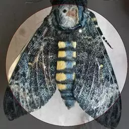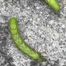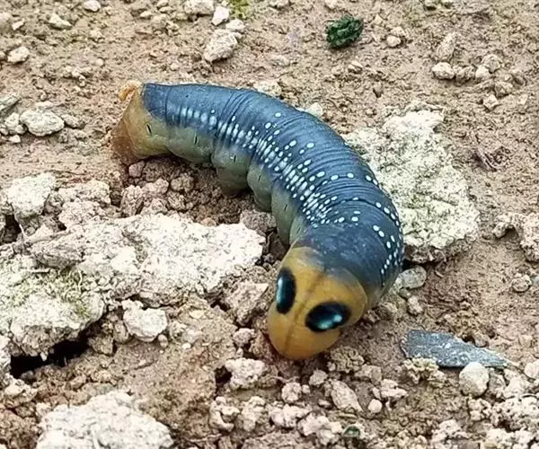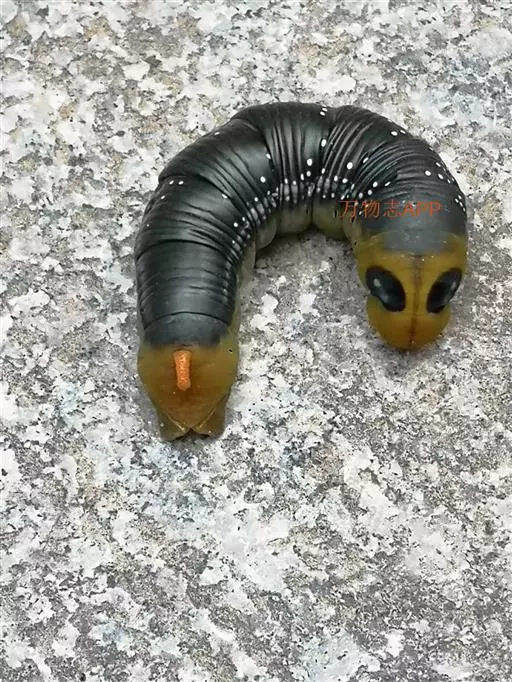 夹竹桃天蛾是身体花纹最漂亮的蛾之一,体表绿色的斑纹使它们看上去就像穿了迷彩装,其名字则因其幼虫主要吃有毒的植物夹竹桃而来。夹竹桃天蛾毛虫身上有醒目的眼状斑点,看起来很像眼睛,其实这只是它们吓唬猎食者的一种退敌方法 。
