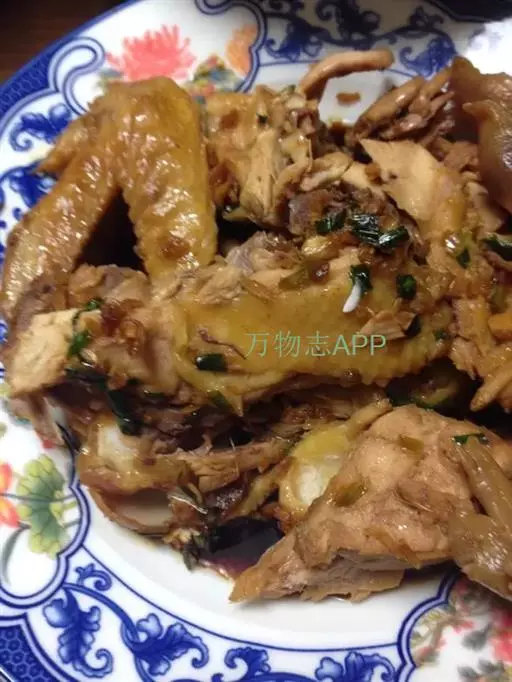 3 猪肉裏加入酱油 料酒 鲜美调味品 煮成红烧肉 红烧肉的汁将用作汤的佐料 把肉汁盛入碗中 加入切成小圆片的葱
