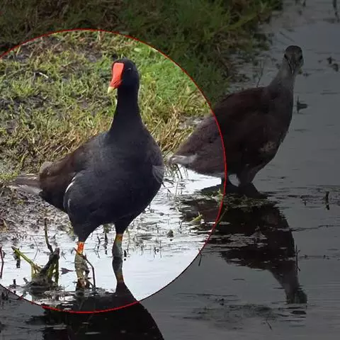 黑水鸡:是鹤形目、秧鸡科的鸟类,共有12个亚种。中型涉禽,体长24-35厘米。嘴长度适中,…