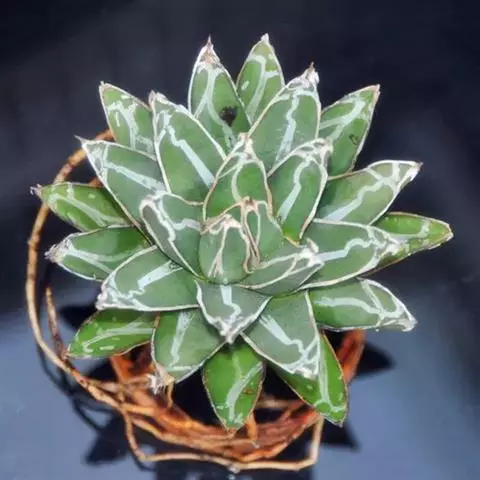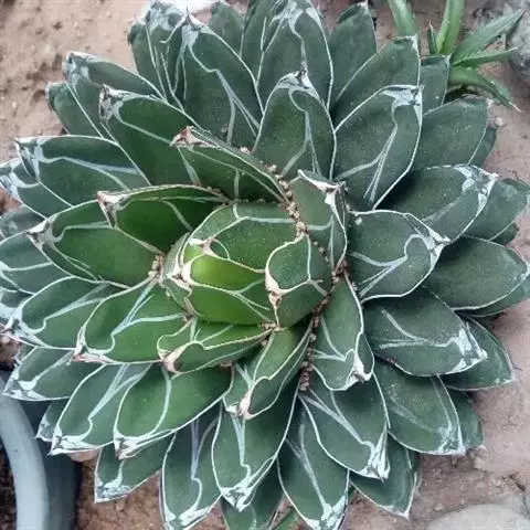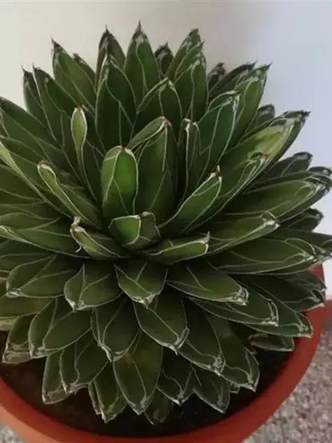 皇后龙舌兰是天门冬科、龙舌兰属多年生草本多浆植物。无主茎,叶丛生,莲座状,株幅40厘米。叶较多,…