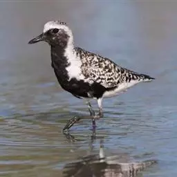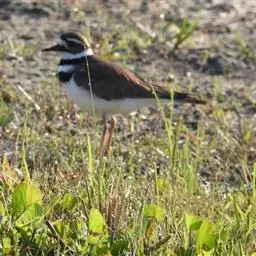 夏羽头、颈、胸灰色,后颈缀有褐色,多呈淡灰褐色。背、两肩、腰、两翅小覆羽和三级飞羽淡褐色,具金属光泽,腰部两侧、尾上覆羽和尾羽白色。除最外侧一对尾羽全为白色,最外侧第二对尾羽具黑色羽端外,其余尾羽均具宽阔的黑色亚端斑和窄狭的白色端缘,尤以中央一对尾羽黑色次端斑最为宽阔。初级覆羽和初级飞羽黑色,内侧初级飞羽内嘲具白色羽缘,中覆羽、大覆羽和次级飞羽白色。胸灰褐色,其下紧连一黑色横带,其余下体白色。冬羽头、颈多褐色,颏、喉白色,黑色胸带部分不清晰。