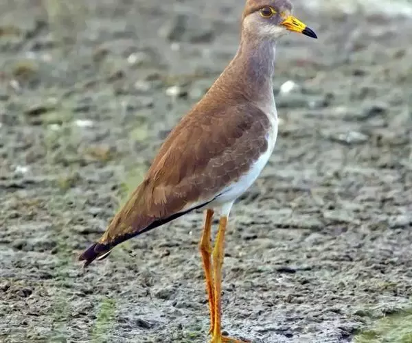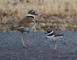 幼鸟头、颈和胸褐色,喉白色,无黑色胸带。 虹膜红色,嘴黄色,尖端黑色,眼前肉垂和脚黄色,爪黑色。