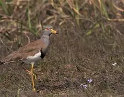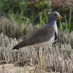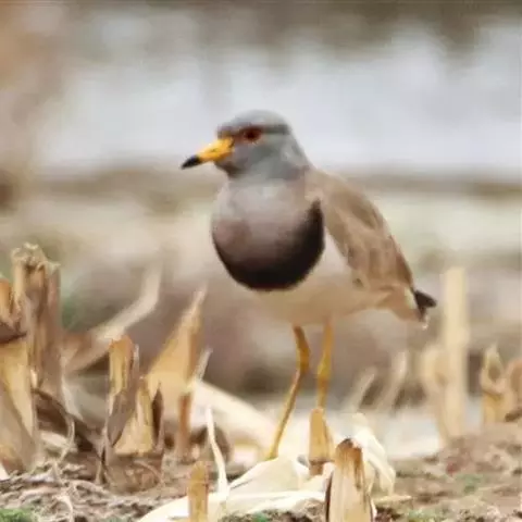 灰头麦鸡是鸻形目鸻科麦鸡属鸟类,繁殖期头、颈及胸灰色;胸部和腹部之间有黑色胸带分隔;背部及两翼大部分覆羽褐色;腹部和腰部白色;尾羽基部及边缘白色,近末端有黑色斑块。非繁殖期头颈部染褐色,颏及喉部白色,胸带不明显。初级飞羽黑色,其余飞羽及与之相邻的部分覆羽白色;虹膜红褐色,眼圈黄色;嘴尖段黑色,后段黄色;腿和脚黄色。灰头麦鸡分布于欧亚大陆及非洲北部、中南半岛以及太平洋诸岛屿,在中国分布于东南沿海地区。栖息于丘陵、平原地区河流、湖泊和沼泽等水体附近。繁殖期成对活动,其余时间集群活动。主要啄食甲虫、蝗虫、蚱蜢等昆虫,也吃水蛭、螺、蚯蚓、软体动物和植物叶片及种子。繁殖期为5—7月,1年繁殖1窝,每窝产卵4枚。灰头麦鸡被列入中国国家林业局发布的《国家保护的有益的或者有重要经济、科学研究价值的陆生野生动物名录》。