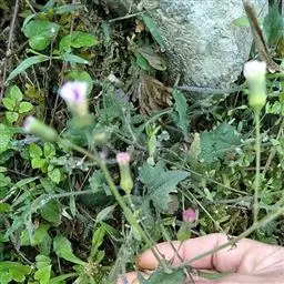 一年生草本,茎直立或斜升,高30-90厘米,无毛或被疏短毛。基部叶小,倒卵形或倒卵状长圆形,顶端钝,基部渐狭成长柄,全缘或具疏齿,中部茎叶长圆形或线状长圆形,长5-9厘米,宽1-3厘米,顶端钝或尖,无柄,抱茎,箭形或具宽耳,边缘具波状齿,上面绿色,下面有时紫色,两面无毛或近无毛,上部叶小线状披针形,头状花序在茎枝端排列成疏伞房状;花序梗细纤,长3-10厘米;总苞圆柱形或狭钟形,长8-12毫米,宽5-10毫米,基部无小苞片;总苞片10,长12毫米,长圆形,宽1-2毫米,短于小花,边缘膜质。背面无毛。小花花冠红色或紫红色,长10毫米,管部细,檐部5齿裂,裂片披针形;花柱分枝顶端增粗。瘦果圆柱形,长约3毫米,具5肋,无毛;冠毛丰富,白色,细软。花果期5-10月。