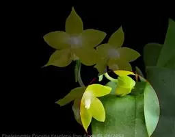 大花盆距兰 Kuntze):茎粗壮,长2-5厘米,节间长约1厘米。叶大,带状或长圆形。伞形花序侧生…