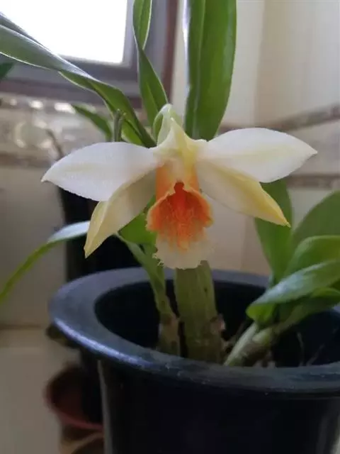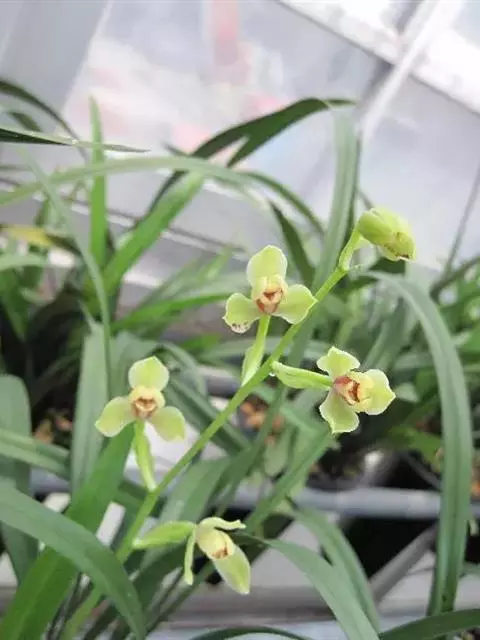 喉红石斛:附生。茎丛生,直立,粗短,近棒状纺锤体。叶2-4枚,生于茎顶。总状花序顶生,花序轴长5-…