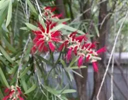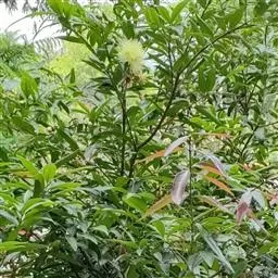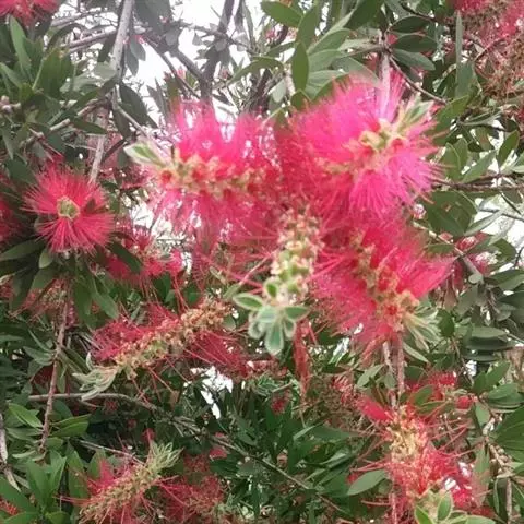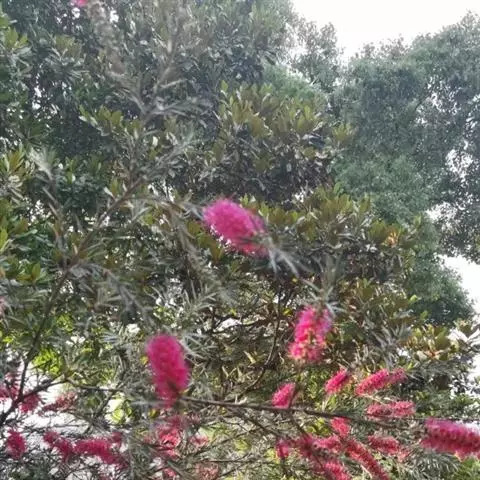 红千层是桃金娘科红千层属的常绿小乔木植物。红千层树皮坚硬,灰褐色,嫩枝有棱,初时有长丝毛,…