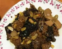 用盐量为净鹅重的1/16,食盐内加少量茴香,炒干并磨细。先取3/4的盐放入鹅体腔内,反复转动鹅体使腹腔内全部布满食盐。其次把余盐在大腿下部用手向上摊抹,在肌肉与腿骨脱开的同时,使部分食盐从骨与肉脱离处入内,然后把落下的盐分别揉搓在刀口,鹅嘴和胸部两旁的肌肉上。擦盐后的鹅体逐只叠入缸中,经过12~18小时的腌制后,用手指插入肛门撑开排出血水。之后将鹅放入卤缸,从右翅刀口处灌入预先配制好的老卤,再逐一叠入缸中,用带孔的竹盖盖上,石块压住,使鹅体全部淹在卤中。根据鹅体大小和不同季节,复卤时间不一样,一般复卤时间可为16~24小时,即可腌透出缸。出缸时要抠卤,放尽体内盐水。