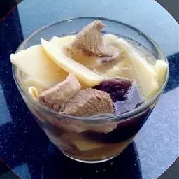 煮前先将鹅体挂起,用中指粗细10厘米左右长的芦苇管或竹管插入鹅的肛门,并在鹅肚内放入少许姜、葱、八角,然后用开水浇淋体表,再放在风口处沥干。煮制时将清水烧沸,水中加三料 (葱、姜、八角),把鹅放入锅内,放时从右翅开口处和肛门管子处让开水灌水内腔。提鹅放水,再放入锅中,腹腔内再次灌入开水,然后再压上锅盖使鹅体浸入水面以下。停火焖煮约30分钟左右,保持水温在 85~90℃。30分钟后加热烧到锅中出现连珠水泡时,即可停止烧火,提鹅倒出鹅内腔水,再放入锅中灌水入腔,盖上锅盖。停火焖煮20分钟左右,即可出锅,提腿倒汤,待冷却后切块食用。食用时浇上煮鹅的卤汁风味更佳。
