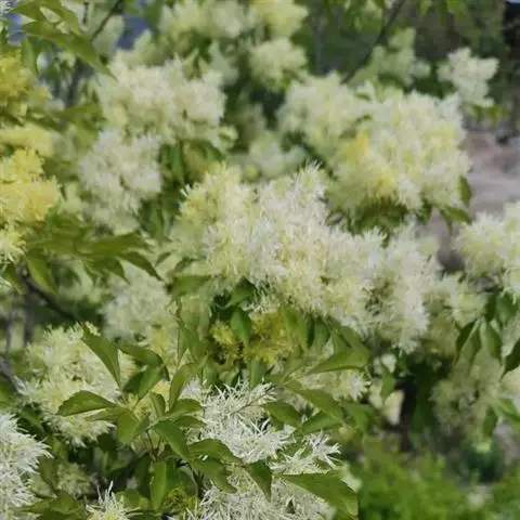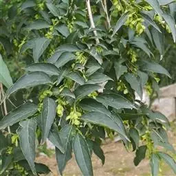 花:圆锥花序生于一年生枝上,长5-20厘米;花密集,雄花与两性花异株,与叶同时开放;花序梗短;花梗纤细,被短柔毛;雄花花萼小,萼齿不规则深裂,花药大,长圆形,花丝短;两性花花萼较宽,萼齿浅裂,花柱细,柱头2裂。