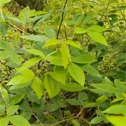 托叶极细小,钻状,长约1毫米;叶三出,叶柄长3-5厘米,小叶长椭圆形,两端渐尖,长6-10厘米,宽1-2 (-3) 厘米,先端具短尖,上面绿色,光滑无毛,下面青灰色,被短柔毛;小叶柄长约2毫米。