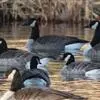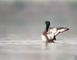 黑雁是雁形目鸭科黑雁属鸟类,又称黑鹅。头、颈、胸、嘴及脚黑褐色;虹膜褐色;背及两翼灰褐色;尾下覆羽白色;胸侧及胁部多近白色纹;颈部两侧各具一个特征性白色横纹,在颈前后断开,未能联成颈环。幼鸟颈部无白斑,而翅上多白色横纹。黑雁繁殖于北美洲、西伯利亚极地的苔原冻土带,越冬于南方沿海的草地及河口。在中国安徽也能见其身影。主要栖息在海湾、海港及河口等地,在冬季里大多出现在有耐碱植物生长的湖泊和水库周围,也出现在周围地势低洼的咸水湖和沿海地区,偶尔还出现在农田地里。性活跃,喜集群,常成群活动和栖息。主要以植物性食物为食。繁殖期在6-8月,雌鸟孵卵,雄鸟通常在距巢100米以内范围内守候警诫。雌鸟孵卵时常将头和颈朝地面平伸出去以降低高度。孵化期为22-28天。黑雁被列入中国林业局2000年8月1日发布的《国家保护的有益的或者有重要经济、科学研究价值的陆生野生动物名