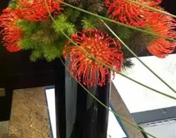 帝王花,山龙眼科帝王花属多年生常绿灌木植;茎干粗壮,叶色翠绿光亮;花朵呈圆球状;其苞片有的完全打开,…