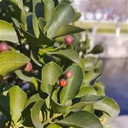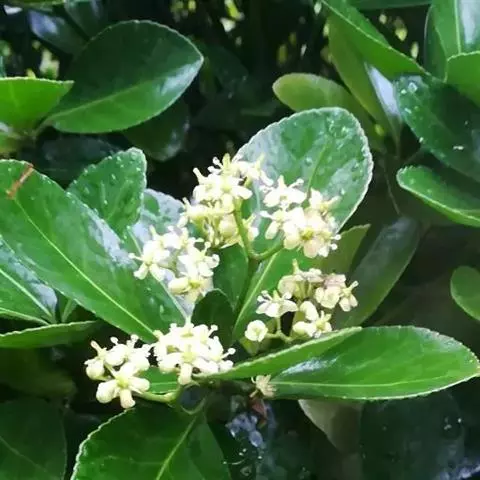 常绿灌木或小乔木,高达8米。 叶光亮革质,倒卵形或窄长椭圆形,长3-6厘米,宽2-3厘米。 聚伞花…