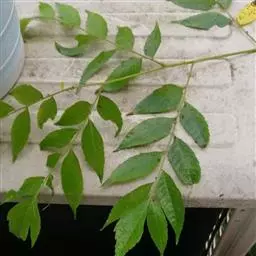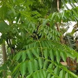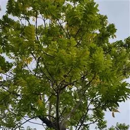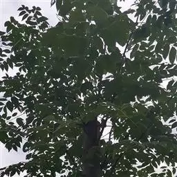乔木,高可达20余米;皮孔圆形至椭圆形;枝具小疣点。叶平展,二回羽状复叶,长45-70厘米;叶轴和叶柄向轴面常有一纵行皱曲的短柔毛;小叶9-17片,互生,很少对生,纸质或近革质,斜卵形,长3.5-7厘米,宽2-3.5厘米,顶端短尖至短渐尖,基部阔楔形或圆形,略偏斜,边缘有内弯的小锯齿,两面无毛或上面中脉上被微柔毛,下面密被短柔毛,有时杂以皱曲的毛;小叶柄长约3毫米或近无柄。小叶通常全缘,有时一侧近顶部边缘有锯齿。