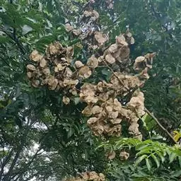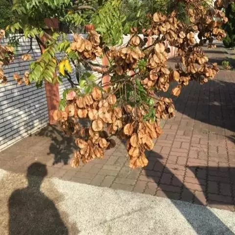 复羽叶栾树 防治方法:⑴若虫大发生期喷乐斯本2000倍与洗衣粉1000倍混合溶液,喷2至3次,间隔7至10天。用25%的呋喃丹可湿性粉剂200至300倍在5月份灌根2次,对杀死若虫效果很好。⑵从11月到第二年3月,可刮除越冬雌成虫,集中刮下来虫体到塑料袋后深埋,配合修剪,剪除虫枝。打冰棱消灭越冬雌成虫,雨雪天气,枝条上会结较厚的冰凌时,及时敲打树枝震落冰凌,可将越冬虫随冰凌震落,把打落的冰凌集中处理掉。