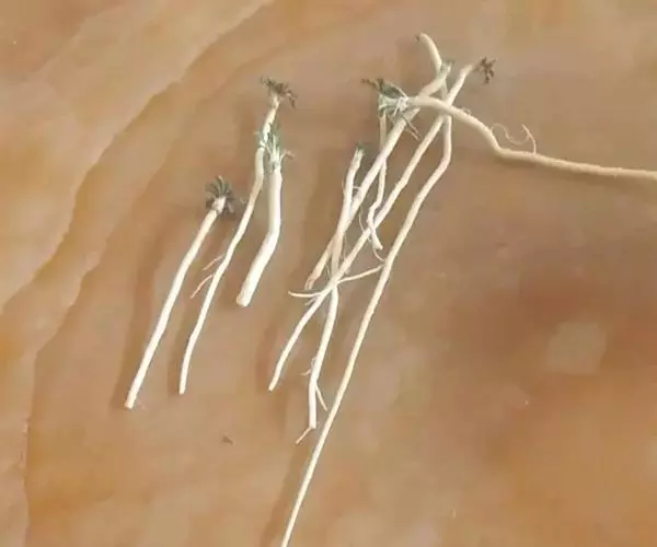 合理控苗:由于远志茎秆细弱,而且不耐强光,所以在夏季极易出现“干尖”,加之近年播量大,所以应在苗长到10厘米时,控一次苗,一方面茎秆粗壮,另一方面可起到控上促下作用,促进根系生长。