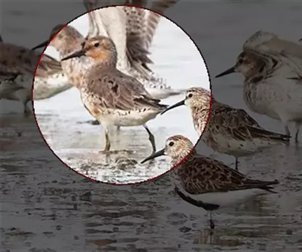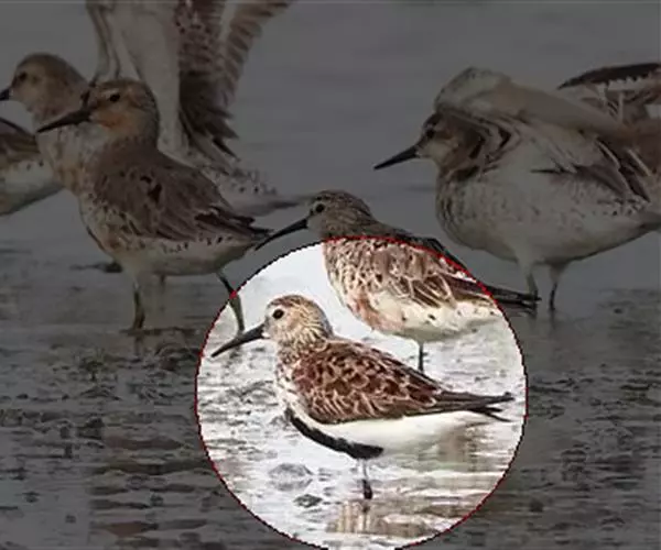 阔嘴鹬是涉禽,体长17厘米。特征为翼角常具明显的黑色块斑并具双眉纹。与黑腹滨鹬平滑下弯的嘴相比,…