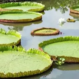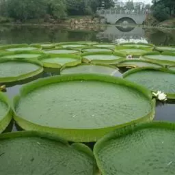 该属植物均是热带著名水生庭园观赏植物,具有世界上水生植物中最大的叶片,直径可达3米以上,叶面光滑,叶缘上卷,犹如一只只浮在水面上的翠绿色大玉盘;因其叶脉与一般植物的叶脉结构不同,成肋条状,似伞架,所以具有很大的浮力,最多可承受六七十千克重的物体而不下沉。