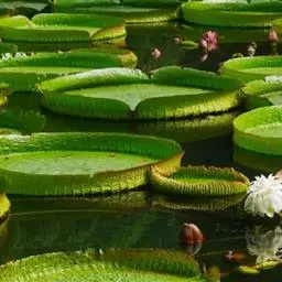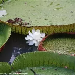 王莲(学名:Victoria Warren):是睡莲科王莲属植物统称。多年生或一年生大型浮叶草本,有直立的根状短茎和发达的不定须根,白色。拥有巨型奇特似盘的叶片,浮于水面,十分壮观,并以它娇容多变的花色和浓厚的香味闻名于世。夏季开花,单生,浮于水面,初为白色,次日变为深红而枯萎。