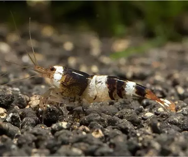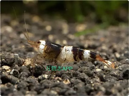 蜜蜂虾(New Bee Shrimp),属于匙指虾科的蜜蜂虾是中国广州的原生种虾类,多由香港出口,身着虎斑花纹 ,身体间杂着四道黑白条纹,花纹的颜色的间隔并不明显,好似蜜蜂身上的纹路而得名。属于观赏虾。